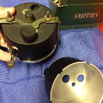 "I have a NOS in the box tach number RN 2350/01. Even sitting in a box the case was still showing some rust. I think most of these were not truly plated but "pickled" in an acid solution. Dipped my case in some mild phosphoric acid to remove the rust, and in 5 minutes was completely bare metal. Decided to refinish it to match the speedometer case with was a flat black. Zinc plated it and did a clear enamel to preserve the reflective inside and then sprayed the outside flat black to match my original speedometer. The black case on the speedometer has a white inside coat".