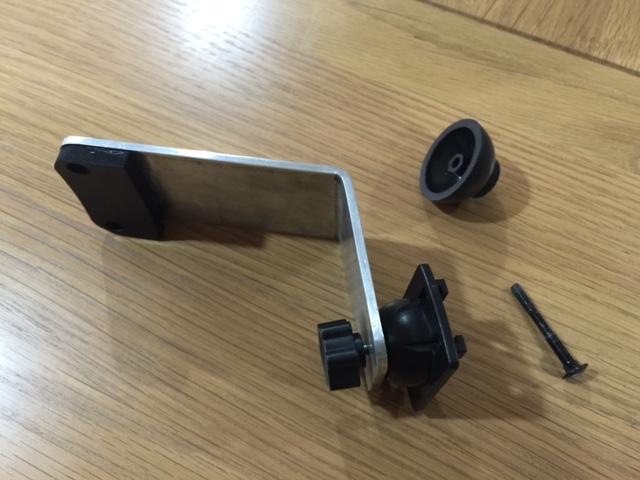 "When installing the bracket it needs a couple of 1/4" thick insertion rubber pads under the bracket to prevent it scratching the dash paint and to clear the dash rail padding. The photos of the installation in the car show the bracket with a 90 degree bend - my first attempt, but you will see has a ball socket on the holder so screen can be angled. For anyone wishing to retain the rear view mirror in the original spot the bracket could be made similar to that shown in the attached sketch (needs a bit wider aluminium strip) then the mirror could be mounted on top of the bracket. (with these brackets you can still get to the ignition key and light switch and there is enough clearance between the steering wheel and phone in both landscape and portrait mode.