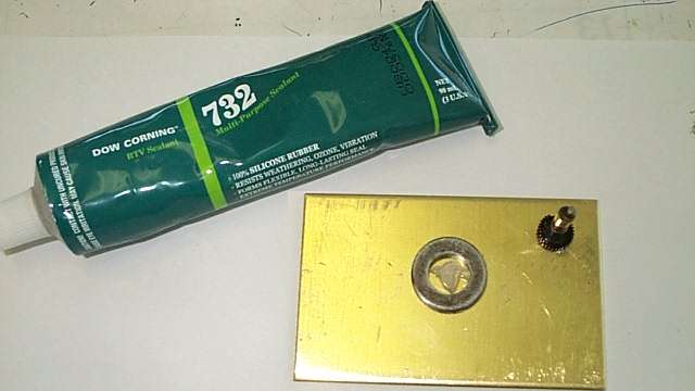 3. Deposit a small amount of RTV or similar compound in the center of the washer (Fig. 3) and press the gear into it to force the RTV around the gear, filling the void between the gear and the inside diameter of the washer completely (Fig 4). Trim away any excess at the top surface of the washer and gear. Allow to cure completely.