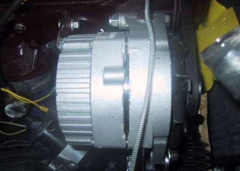 I was surprised that when I plugged in the Field/Relay cable (energizing the alternator), the engine did not bog down at all (even though my battery was discharged down to about 11.8 volts – just enough power to turn the starter). The alternator brought my battery up to full charge in about 5 minutes. With the engine running, the belt appears to run straight and true with no bouncing. I get about 14.4 volts at 700 RPM rising to 15.1 volts at 1500 RPM. The regulator holds it at that point at all RPM’s above 1500. At idle with the headlights on the voltage drops to about 13.1.