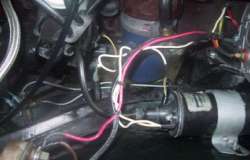 It has two leads that match up to the two lugs in the body of the alternator. These two terminals are clearly labeled on the alternator as R (Pin1) and F (Pin 2). I found a couple of sites on the internet that convinced me that the R input is for the idiot light relay and the F terminal is for the Field input that energizes the alternator (must have been right because the alternator works just fine). The power output of the alternator uses a small bolt that protrudes from the back of the alternator, to which I attached a ring terminal. . On other Delco alternators I’ve seen the connector to this bolt has a plastic cover that snaps on to cover this bolt. I have been unable to locate this part.