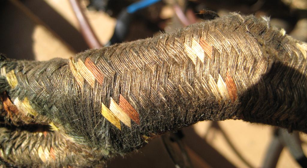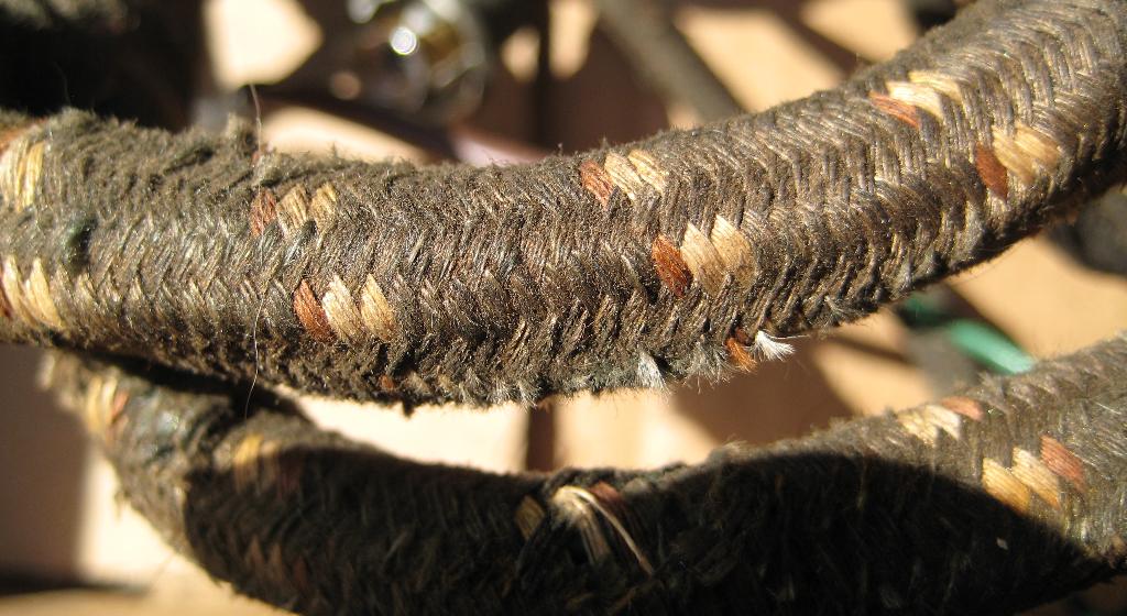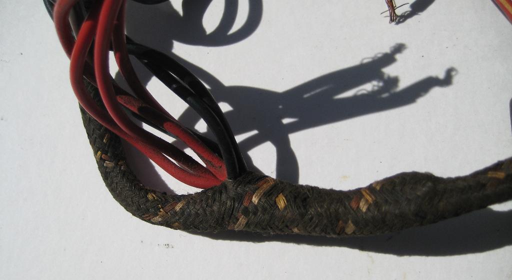 This page will be an effort to record concours originality of the MGA wiring harness cloth braid covers including the weave pattern, tracer colors, and number of threads for each woven braid. I am hereby soliciting for pictures of wiring harnesses from all models of MGA. Since early cars had individually wrapped wires, I would also like pictures of those harnesses showing the wrap pattern and colors and threads on individual wires.