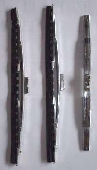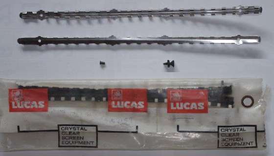 Above right: Original MGA wiper blade holders. Lucas (chrome on brass- "Rainbow" pattern for curved glass). A pair of NOS with 9 inch blades (ideal for the bigger screen on the Coupe).