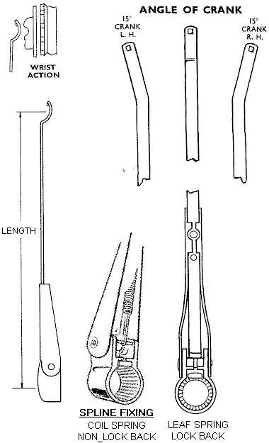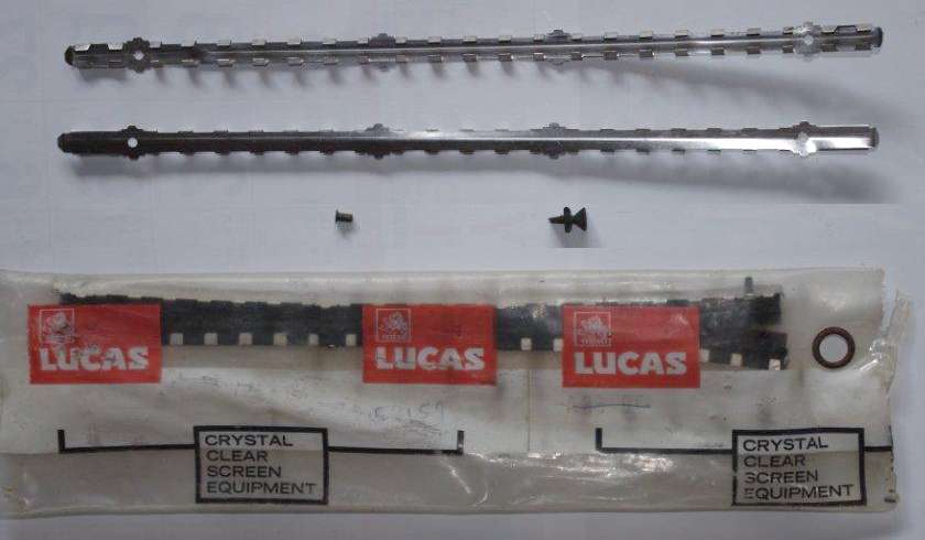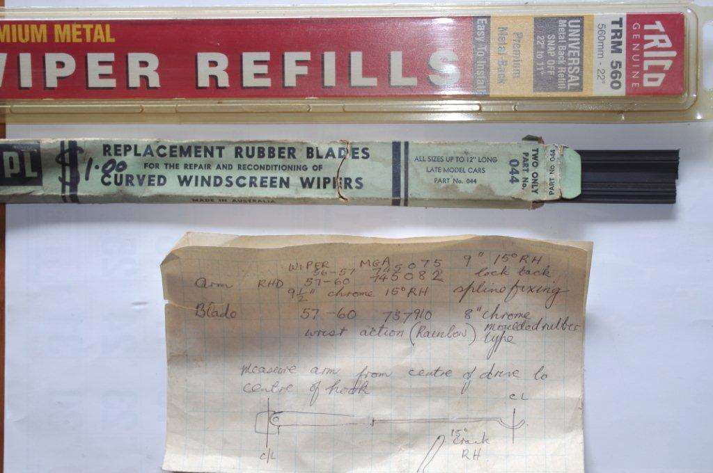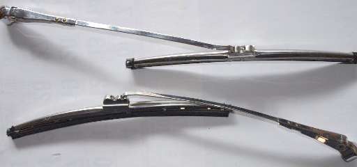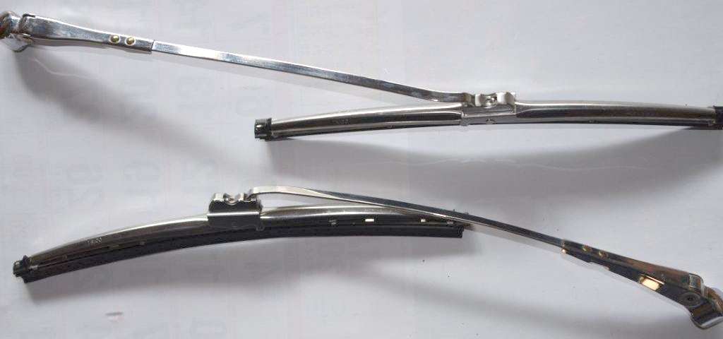 Original wiper blades for the MGA are Lucas Rainbow Chrome with brass spoon fitting ("rainbow" referring to the curved glass).