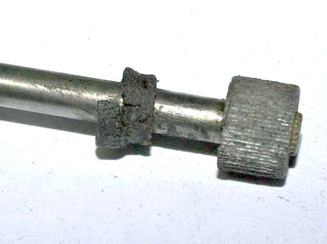 This implies that the spline on the wiper end may be slightly smaller, and that end may have been assembled after the shaft was slipped through the bushing. I would have to think a bit to decide if a puller tool could pull the knurled knob off without damage, remembering that the knurl is thin wall at the bottom edge. The wiper end of the shaft has three punch marks where it has been burred, so the female splines would likely be damaged if you applied any force with a puller. The drive end has no such 'spiking' and is a push fit.
