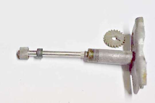 See prior article ET-113A for information to R&R the wiper wheelbox. The wheelbox must be out of the car for this operation. It will also help if you have an arbor press to press the spindle out of the sprocket and reassemble it later. I won't claim it can't be done with a hammer and punch, but it is one of those situations requiring high force for a press fit part, and you might bend or otherwise damage something trying to hammer on it.