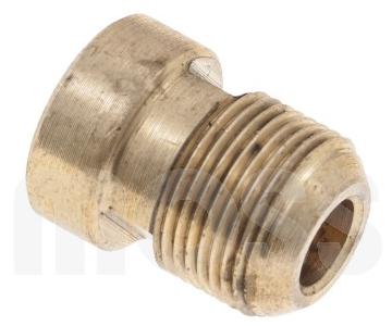 I had a slightly different but related problem in the late 70's. I had my rack drive tubes cleaned by the Redi-Strip chemical process, which stripped the brass flare nut from the pipe. The thread here is an odd size, I think 9/16-inch major diameter (or possibly something Whitworth), so the flare nut is also a special part, not generally available. My solution was to turn the threaded shank down to 1/2-inch and re-cut the thread to 1/2-UNF fine thread, making the part compatible with a standard flare nut (readily available).