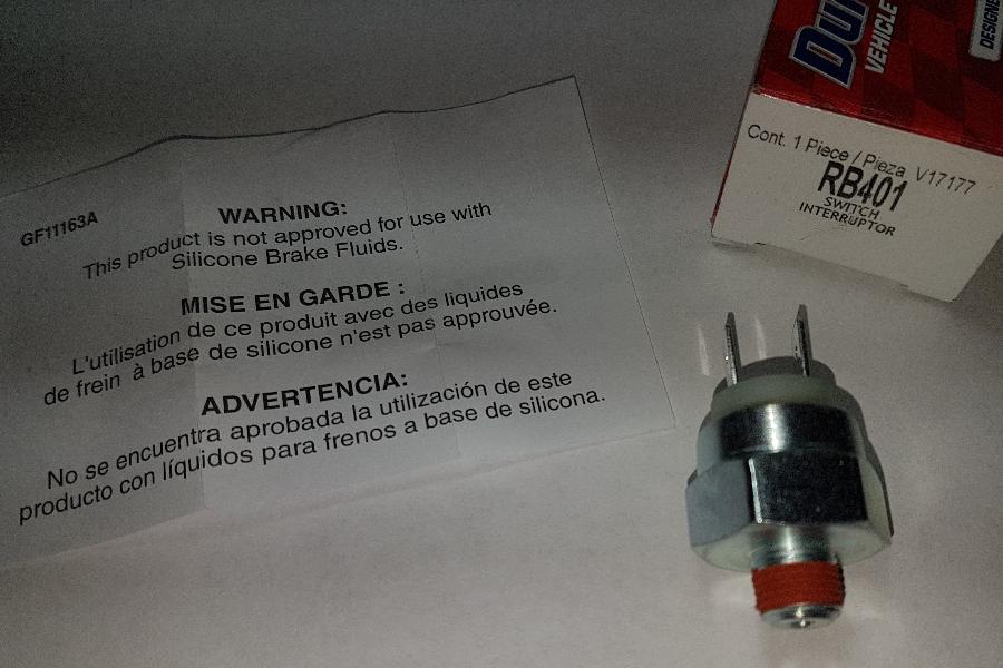 "I bought a Duralast RB 401 from Autozone for my early MGB GT. It was the last one in that store. This version had all the references you mentioned stamped on the underside of the switch. FAE; 21020; said Made in Spain, ect. It also had no sealant on the threads. I decided to buy another for backup. The store imported another RB401 from a store about 20 miles away. This RB401 switch is very different. It has no markings on it, it has a white top with no “wall” between the male spades, the spades just protrude from the plastic, its point of manufacture is not identified, it has a sealant on the threads. It does have a disclaimer saying it is not compatible with silicone brake fluid the first RB401 did not. So, it looks like there is now a third version of the RB401. Since I bought it for backup I cannot report on its quality". -- Keith