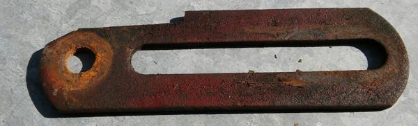 This problem stems from the fact that there were originally two different generators for the pushrod engine MGAs. First one had slightly smaller end plate and used the smaller fan. Second one using the larger fan has a larger end plate with the link bolt hole farther out so the fan doesn't hit the bolt. They are all original pats, just matched up at a different point in time. The adjusting link shown here has been modified to avoid touching the fan fins with the larger fan installed on the generator with the smaller end plate.