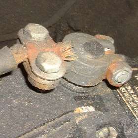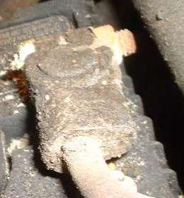 Install the hot terminal first, while there is no ground connection on the battery, so you can't accidentally short the wrench to ground. Install the grounded cable clamp last, where it doesn't matter if you touch the wrench to ground. If the connectors in the pictures appear dirty and corroded, they are a little, but looks can be deceiving. While the bolts are a bit corroded, the bolt-on clamp has a solid bite on the copper cable. The rest is mostly accumulation of a little dirt as the posts and connectors were thoroughly cleaned and coated with silicone grease at assembly. All is well here with very tight electrical connections.