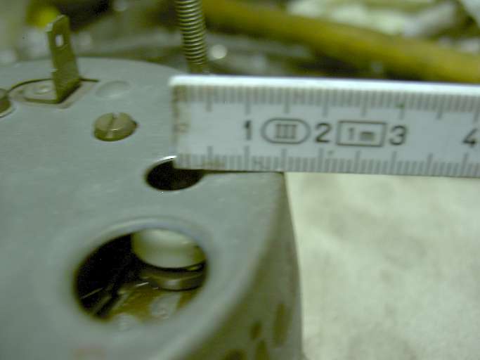 Having disassembled the electric tachometer once for polarity change or calibration, you may not want to do it again. You can provide a hole in the back of the case for access to the calibration knob if it should ever be needed again. Pictures below show location for that hole.