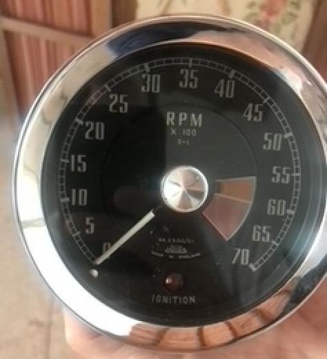Cute. The case and face are original MGA Jaeger tachometer, but much of the mechanical driver has been replaced with electronics. So I don't have a clue without instructions from the source of the modification. Since it does not have an induction loop (like mid production MGB), I only assume that it is a voltage sensing tachometer. And there may be the rash assumption that it is negative earth system, but not even guaranteed that. It is possible to make custom built positive earth electronic circuits.