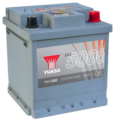 Here's another small one, YUASA YBX5000 series, YBX5202, 12-volt, 45AH, 400 Amps. If you can believe it, that would be very good storage capacity for a battery this small.
