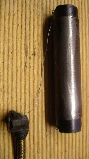 If you are thinking of rewinding this spool you will need to very carefully measure the wire diameter with a micrometer, and also count the number of turns of wire as you unwind it. To have the proper electrical resistance this is enameled resistance wire (not copper). You may have to procure the stuff from an electrical supply house. See additional notes about the wire alloy in Addendum below.