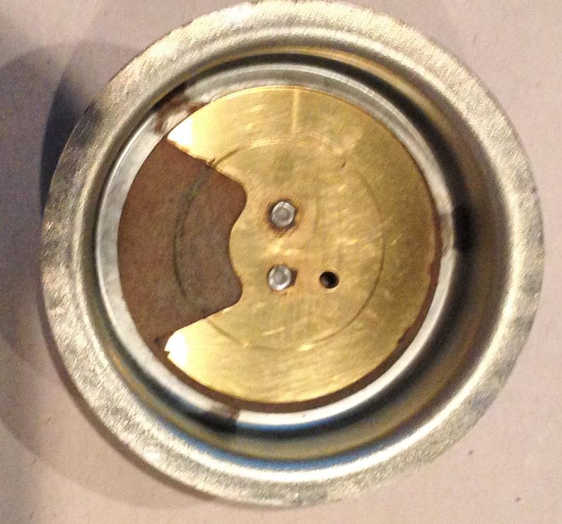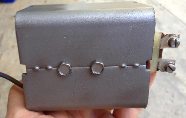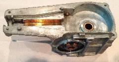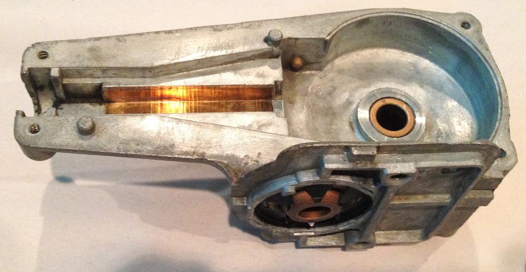Bottom of the motor housing with the coil cradle reinstalled. Note that the two holes are closer to one end than the other so you need to install the cradle with the correct orientation. |