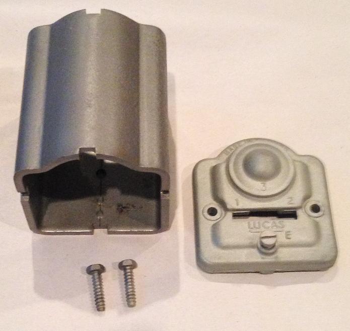 The gear box cover and the parking commutator cover in place with the four screws that hold the cover in place off to the side. |