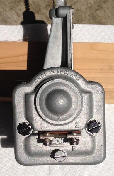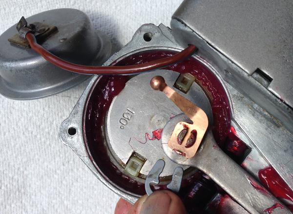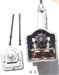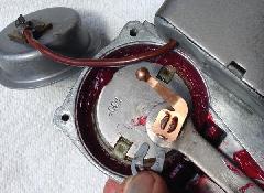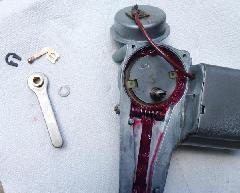 The crank link and the copper parking commutator contact in place with me holding the circlip ready for installation. Note I have also installed the cable which is shown in the next picture. |