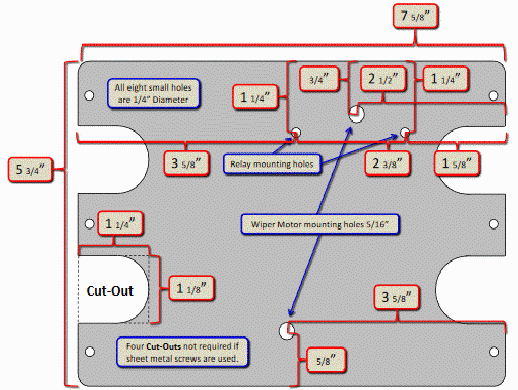 MGA Two Speed Wiper Motor Mounting Plate Dimensions