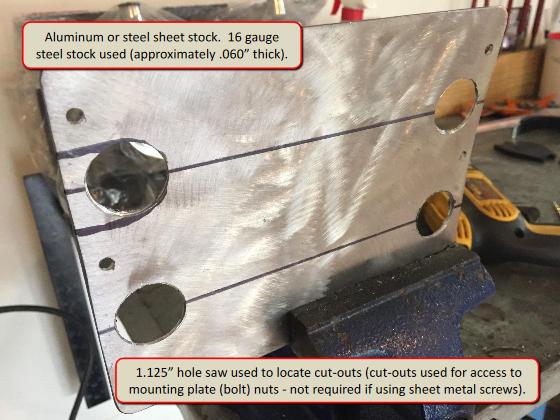 On 7/18/2021, John Casey wrote: Wanted to provide an update to my mounting plate schematic. There was an error in the hole size for mounting the plate (correct is 1/8" vice 1/4") and I removed the cutouts for accessing bolts on the back since using #10 sheet metal screws has proved successful for many years of operation.