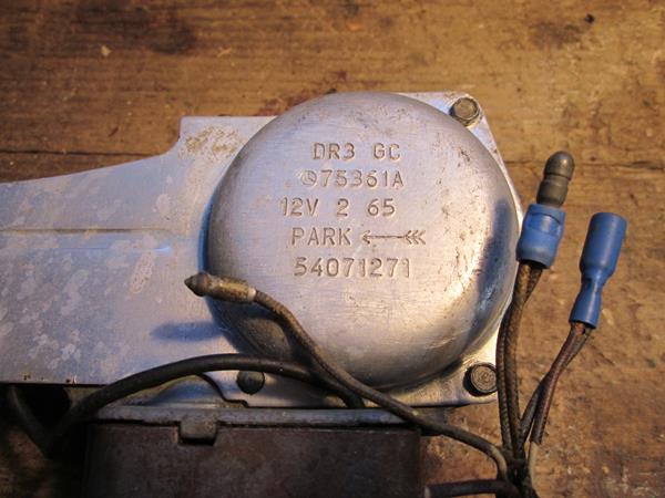 The DR3 wiper motor resembles the DR2 in that the motor end is the same size as the DR2 but the gear-wheel and its housing are larger. There are no terminals on the end cover, apart from the motor earth, and a bundle of wires emerges from the joint between the end cover and the housing, 5 or 6 depending on the model.