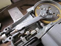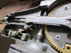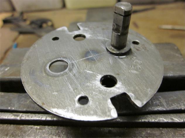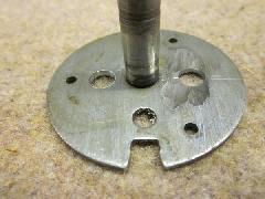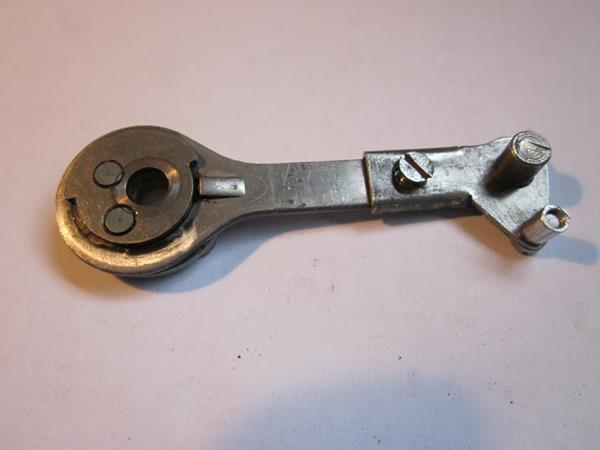 The last picture shows the retaining mechanism for the crank pin. Fitting over the 3 rivet heads is a kind of swash plate with a double-D piercing, then a conical spring, a washer and a clip.