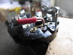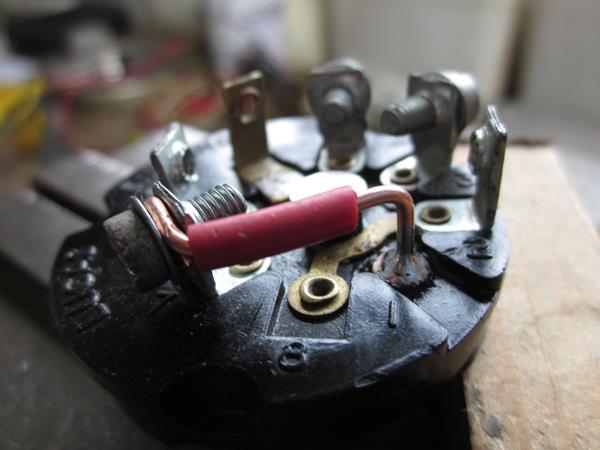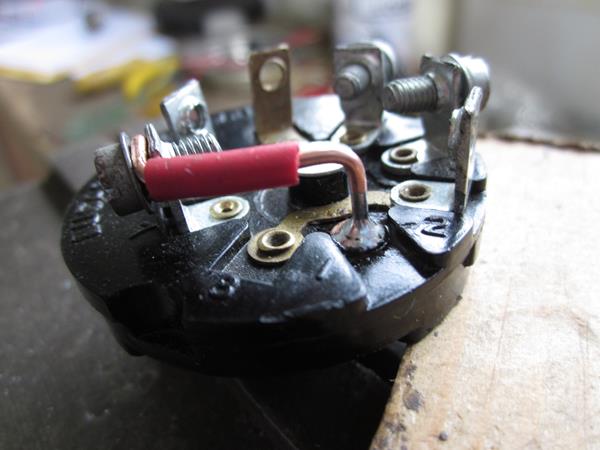 There is an internal connection for Terminal 5 but no terminal so one has to be made and soldered to the hollow rivet. I made the terminal with a hole to fit over the peen of the rivet so the base of the terminal could be soldered flat onto the washer.
