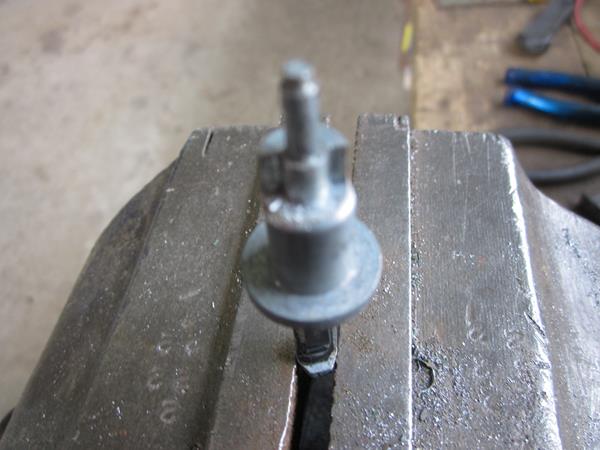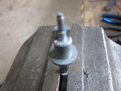 Not having a lathe, I tried grinding on the back side of the crank pin to remove any fillet weld but this did not work so I measured out from the crankshaft to find the centre of the pin and drilled through with an 8mm spot weld drill. The pin came away with a very small spigot which located in a new hole that I drilled with the same drill.