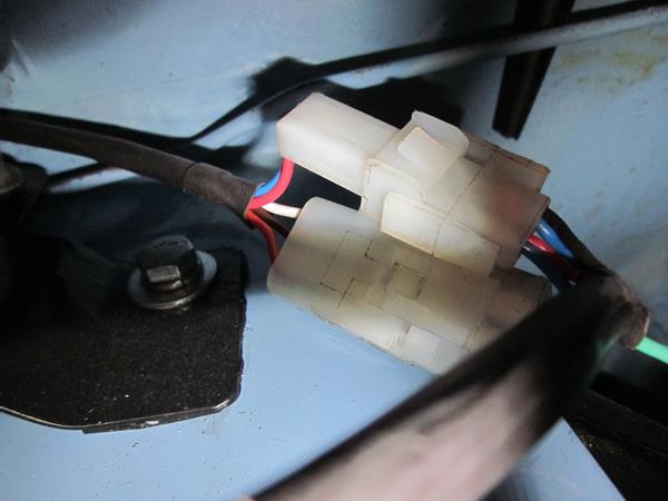 Having got the rotation necessary for a RHD car two harnesses were made, one to contain the motor tails and another to connect to the switch. They were connected with 2 multi-pin plugs with a fuse on the green power supply wire from the existing harness.