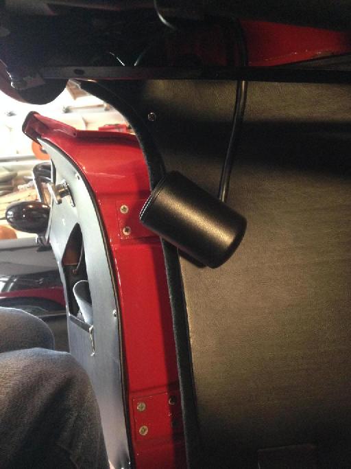 Installed via one of the existing screws that holds the trim panel in place. This does shift about if you knock it but I'd rather not drill another hole in the panel.