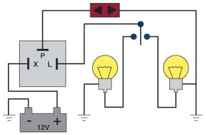 If you managed to muddle through the last two articles this one should be a cinch. The way I finally did it is a variation on Flashers The Cheap Way, because I only use one flasher unit, and it could be done without a relay. You might want to print this diagram and keep it on the side while you read the details.