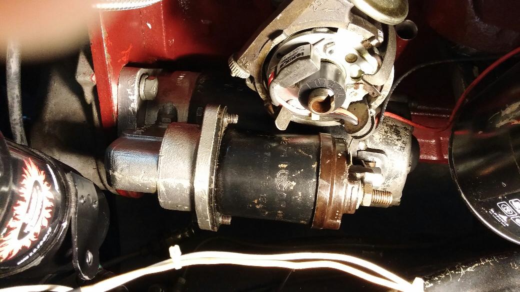 "Did anybody actually do that other than Bill Spohn? I installed the starter in my MGA, (fits perfectly) but the problem is, the distributor cap will not fit on the distributor any more. The solenoid is too close to the cap. Tried both the Lucas 25D and 45D, but no luck. Maybe the Marina used a lower mount starter position. I noticed in Bill's picture there is no distributor installed, looks like there is a plate covering the mounting hole. Wonder what he used for a dist"?