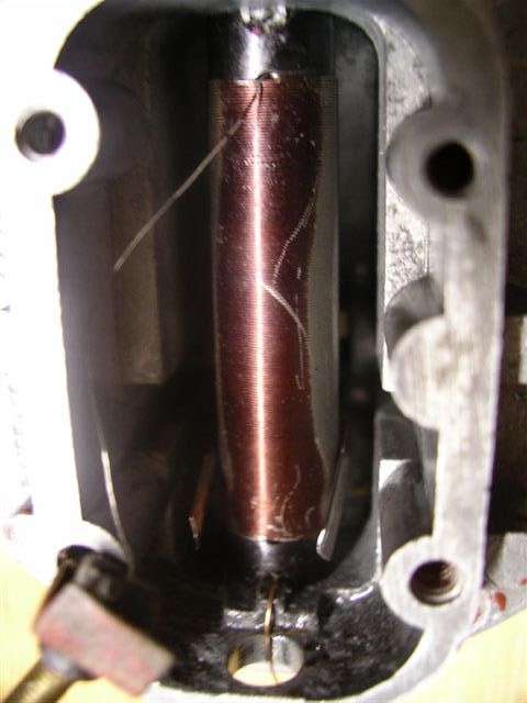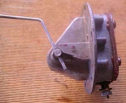 The bottom electrical contact stud should be mounted in a square fiber block inside the housing or a metal block with a stepped fiber washer underneath, with the fiber piece electrically insulating the stud from the housing. The signal wire from the coil must contact the stud but must not contact the housing. The wire connects to the stud, and the stud goes through the fiber piece. The first line of defense against leakage is for the fiber piece to seal on the stud and against the bottom of the housing. One trick there is if the wire is between the stud and the fiber block there may be a small leak around the wire. Underneath there is another fiber washer to electrically insulate a brass flat washer and nut from the housing. Below that should be two flat washers and another nut to attach the gauge signal wire to the stud. The bottom side fiber washer is supposed to be an insulator, not intended to serve as a fuel seal.