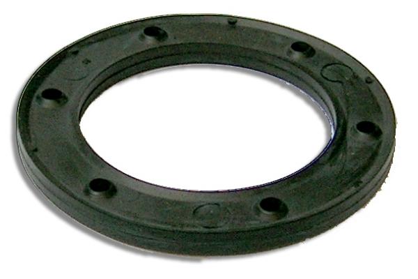 About the gasket for sender unit to tank joint: some vendors now supply a molded Viton gasket that is properly fuel resistant, thick and fairly soft with raised sealing ridges around the edges. The picture at right is from Peter Edney MG Parts in the UK, and I believe Moss Motors UK and USA have a similar part. These seem to seal as intended, except that fuel may seep out around the screws. This stems from the holes in the gasket being clearance holes, and fuel seeping around the screw threads. Moss USA recommends a set of nylon washers to install under the screw heads to seal the screws. This is a non-issue if you use a cork gasket with small holes that are interference fit with the screws.