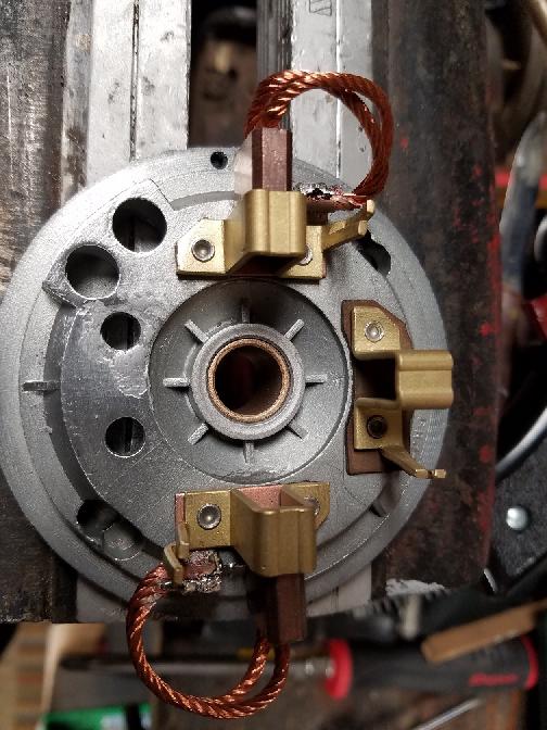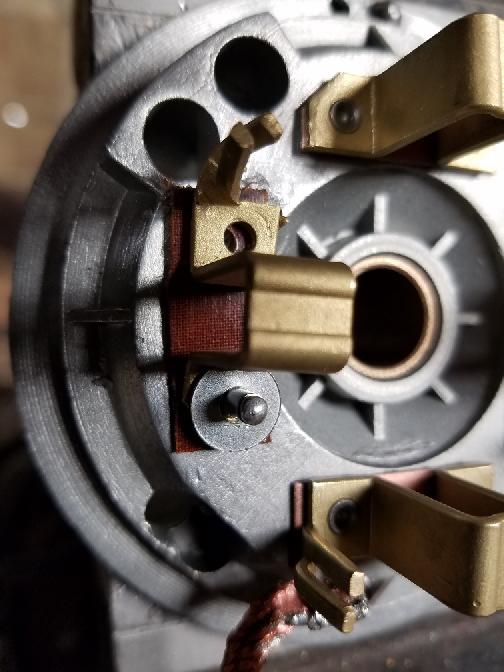 Did the same with the other side. Added some new brushes, put it all back together, and it now works perfect. Need to go back to Menards and get some more spacers and fiber washers. Parts equal about $6.00 including new brushes.