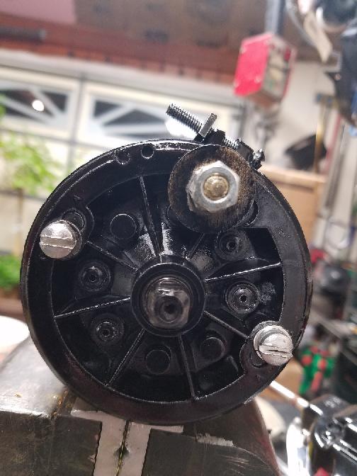 "I picked up a C39 22265K starter off the internet in hopes it was repairable. This was a 4/56 built unit so it matches my car. When I got it and hooked it up to a battery it did not work. After taking it apart I noticed the same thing my orginial started had, a burned out CE Brush end bracket. I found one on the internet sometime ago and had my first starter repaired but the piece was $$$$. So I have decided to repair it my self.