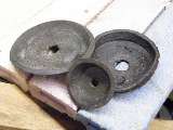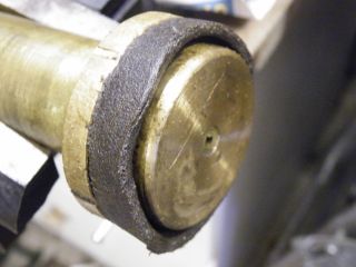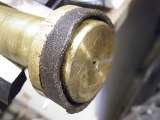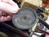 This leather washer has a small hole through the center. To make one you have to find some decent leather that is not too thick (or too thin) i.e. nice and manageable. Cut a disc that is approximately half an inch larger all round than the diameter of the cylinder bore. Make a central hole as neat a fit as possible for the securing screw (or rivet) to pass through. Leave this new washer to soak in tepid water for a good hour, or even overnight. Then put the wet washer onto the piston and fix it firmly in place with its screw or rivet. Around the washer place a jubilee clip (water hose clamp) and tighten it until it is the same diameter as the pump barrel. Push the edges of the washer with a screw driver against the inner edge of the clip to get rid of any creases. Leave the new washer in place to dry naturally overnight if necessary. When dry, pare away any excess bits of leather from around the rim of the clip. You will need a really sharp blade to do this, and try to keep the edge equal all the way round. Give the washer a good oiling after removing the clip, and insert the piston back into its bore. An additional dab of silicone grease may give the leather longer service life (without maintenance), as the silicone grease will stay pliable and will not dry out.