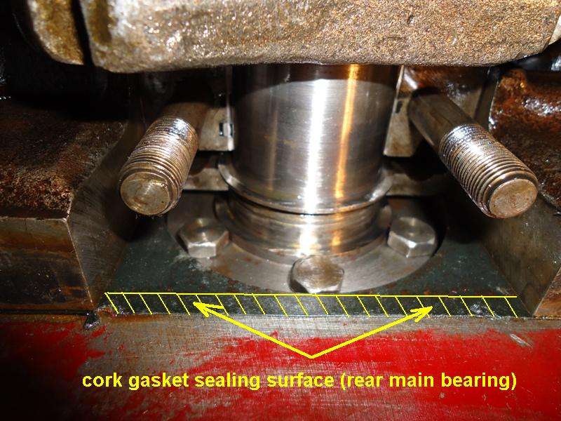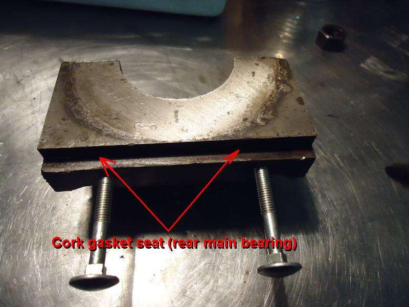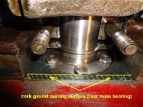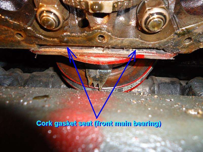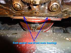 2.) Use a single sided razor blade or razor knife to shave down the thickness of the cork to a point where you can press it into the slot with your fingers. Glue it in place with RTV sealant (Permatex Blue), let it set until the sealant is cured, then shave it flush in normal manner. This is what you have to do when you remove the oil pan and replace main bearings without removing engine from car to R&R the end plates.