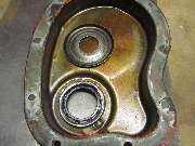 Looking inside (center picture) there is the formed cup surrounded by a moat similar to the first cover. The back face of the seal pocket has about the same distance from the gasket flange, so the oil thrower fits in the same location on the crankshaft. A difference here is that the surrounding pocket (the moat) is much deeper (cover extending farther forward). The Servicc Parts List says the oil thrower ring changed at the same time as the timing cover, old ring 1A1546, new ring 12H775. By the space allowed the oil thrower could have been smaller diameter and deeper, but in fact the same oil thrower will fit and will probably work just as well with the newer timing cover.