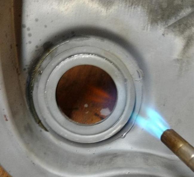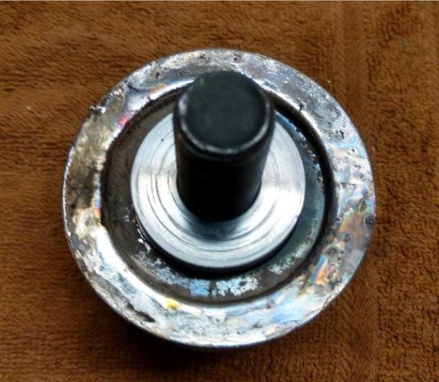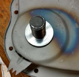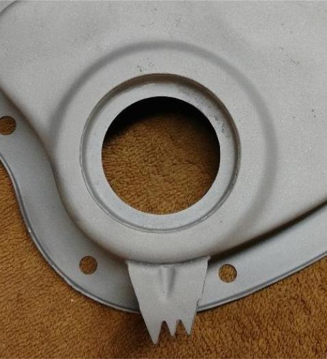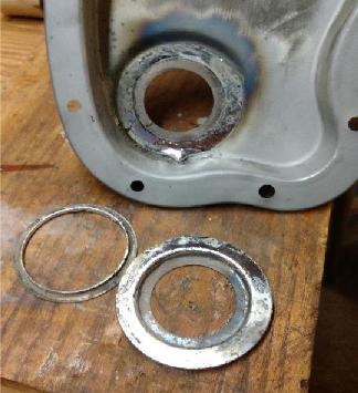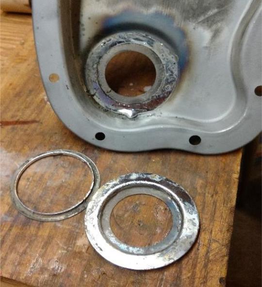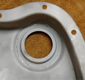 5. Solder the expanded cup to the inside of the timing chain cover making sure it is centered.
