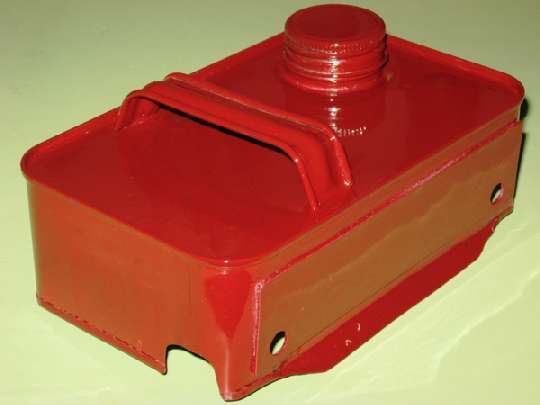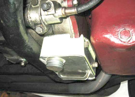 This one installed on an MGA Twin Cam is made from the top of a rectangular one gallon paint can with a screw-on lid. A little crude in appearance, but it will work well. Use large flat washers to reduce stress and avoid cracking of the thin sheet metal.