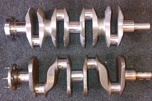 Here's another similar custom "ghost main" special crankshaft, sitting with a standard crankshaft for comparrison.