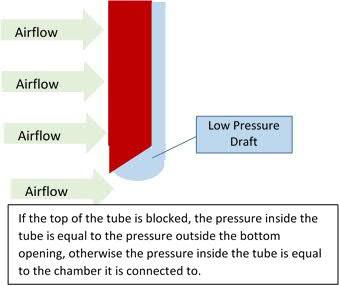 The open input (orange) is atmospheric pressure and allows flow through the tube reducing the draft vacuum accordingly.