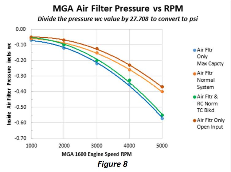 Conclusion: A well maintained and properly working engine and MGA crankcase ventilation system, always draws blow-by gasses into the air filter, is synchronous to engine speed and blow-by, draws fresh air up through the TC vent but does not flow fresh air into the crankcase and the TC vent has no meaningful draft effect.