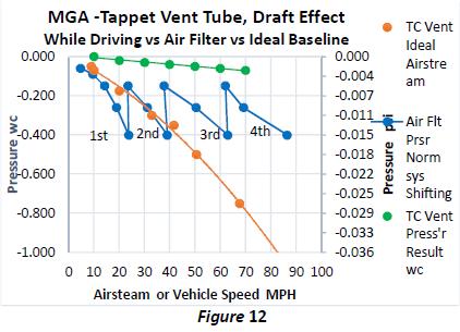 Note: The orange line is what the tappet vent tube is capable of if it were in the main air stream. Overlaid on this chart from previous test data.