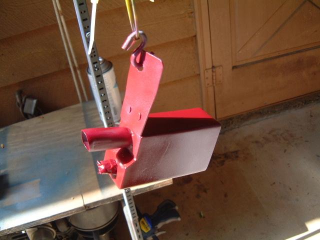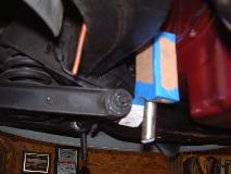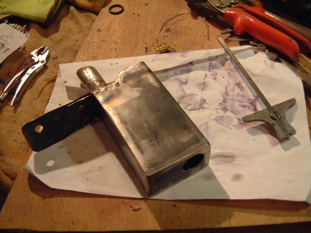 "You cannot see it in the photos here, but there is a large grommet in the upper tube hole (you can see the large hole in the unpainted photo, above). My thinking was that movement from side to side would cause the tube (which was lubed with vaseline) to slide in the grommet. I don't think we're talking about very much up and down here. The grommet is snug, but not binding on the tube. In addition, while the bracket is steady enough to hold the box, it could flex a little. I did check the top of the grommet when I got back, and it was dry. Anyway, only time will tell if this will work".