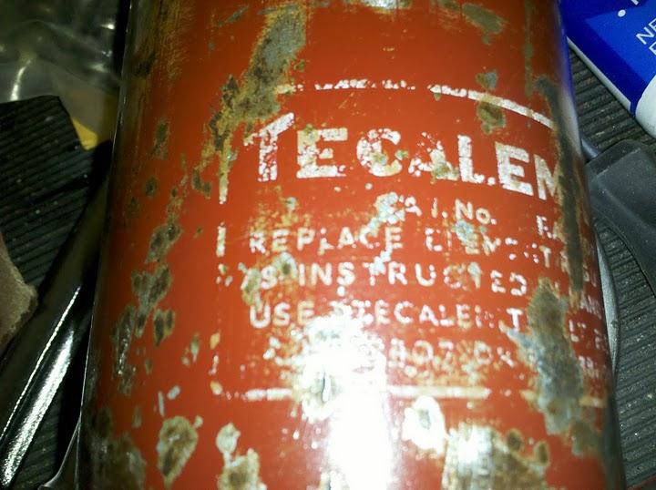 Photo at right shows original printing on a Tecalemit oil filter canister. One for the concours enthusiasts.