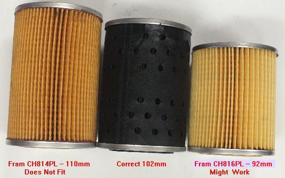 There are hundreds of cross reference numbers for various manufacturers and applications, but not all are equal. In particular, length can vary, and 110-mm (4.312-in) definitely does not fit into the original MGA/MGB/Magnette canister.