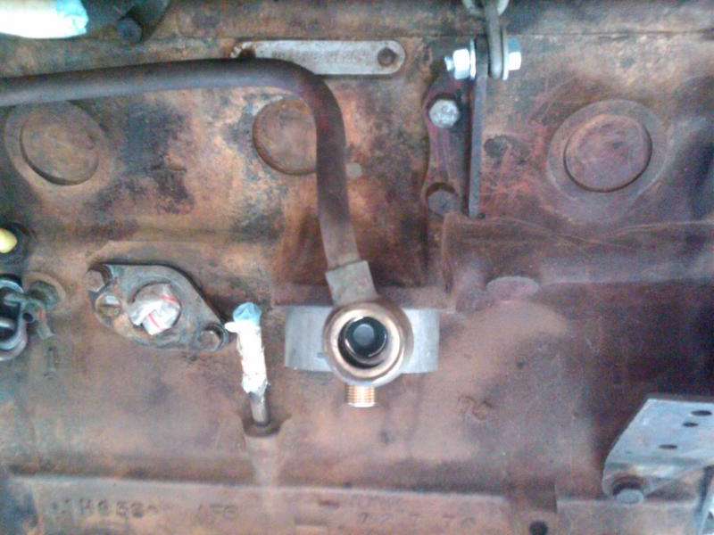 Photo above shows what happens if you try to use the connector pipe from the early Tecalemit one-piece filter canister. After reforming the pipe to get the banjo bolt aligned, the back to front pipe run is not horizontal, because the vertical run is too long.