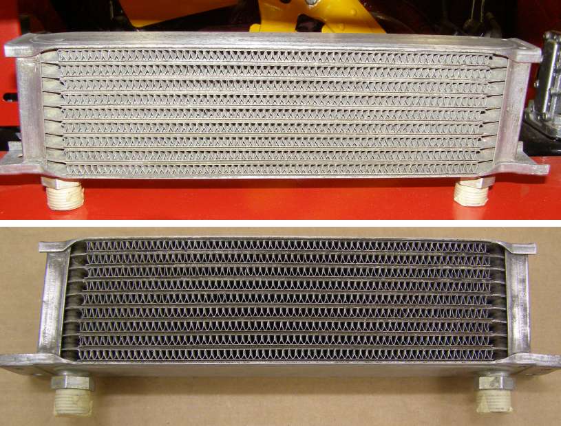 Ten row oil cooler, original factory style. No mounting ears on top.