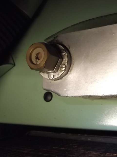 Photos at left show the oil cooler on Richard Gough's MGA Twin Cam YM1-1560, having an extra fitting on top with a closure cap. This is original factory equipment. Purpose of the extra fitting is unknown, but may have been for a temperature probe. So far this is the only report of an oil cooler with more than two hose connectors. Notice the base fitting is attached to the top of the oil cooler with small screws and a gasket. This is most likely a special adaptation, one of a kind, as a production part would have been welded here.
